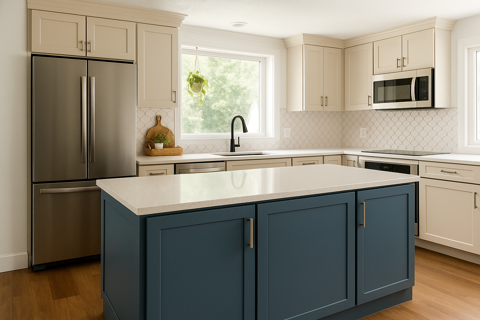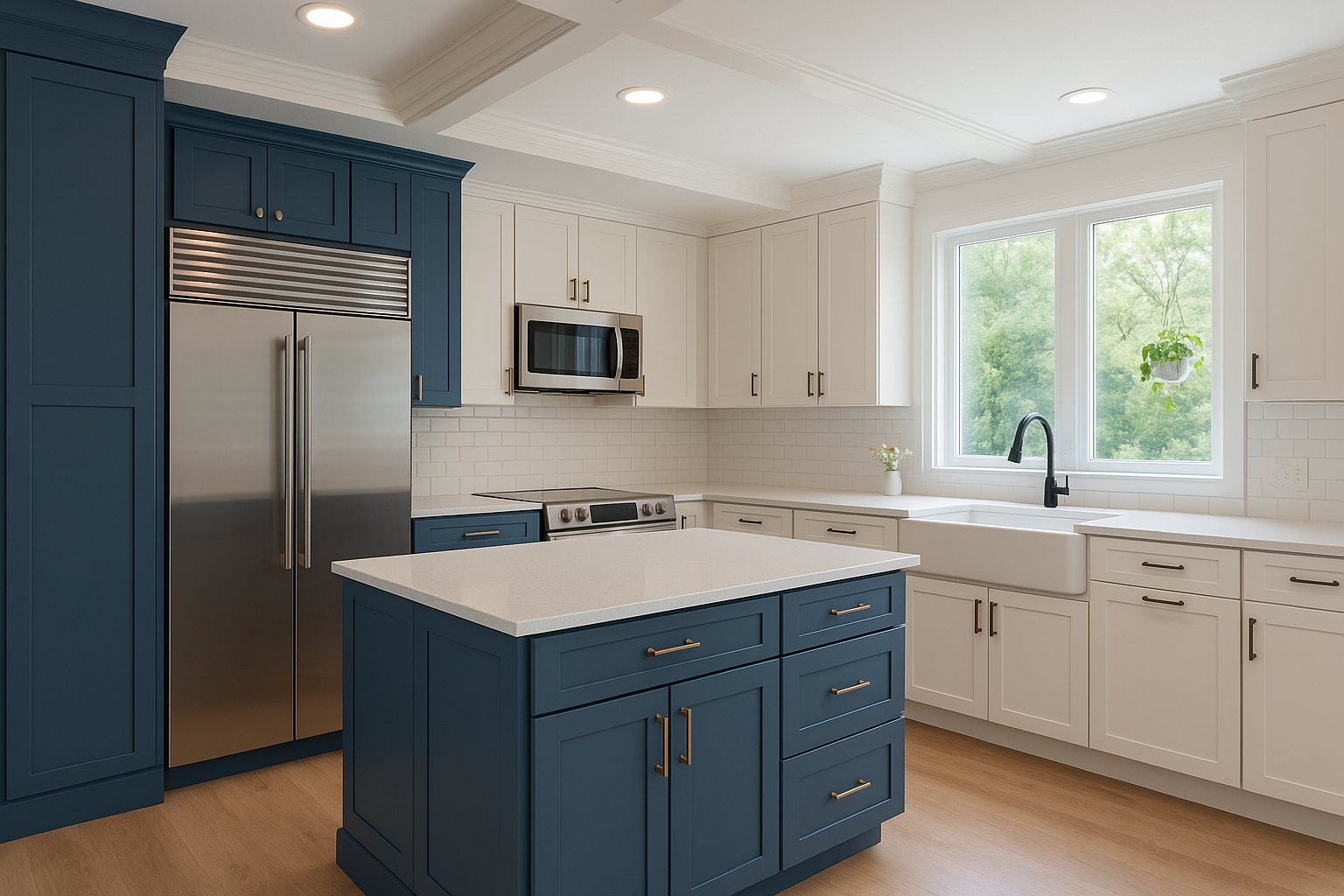 Newburg: A rich, deep navy that anchors the kitchen with bold sophistication. Perfect for islands or lower cabinets when you want contrast and drama.